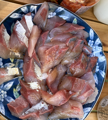 途中スーパーマーケットでお魚を仕入れました