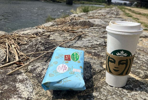 ホットコーヒーをテイクアウトして鴨川へ